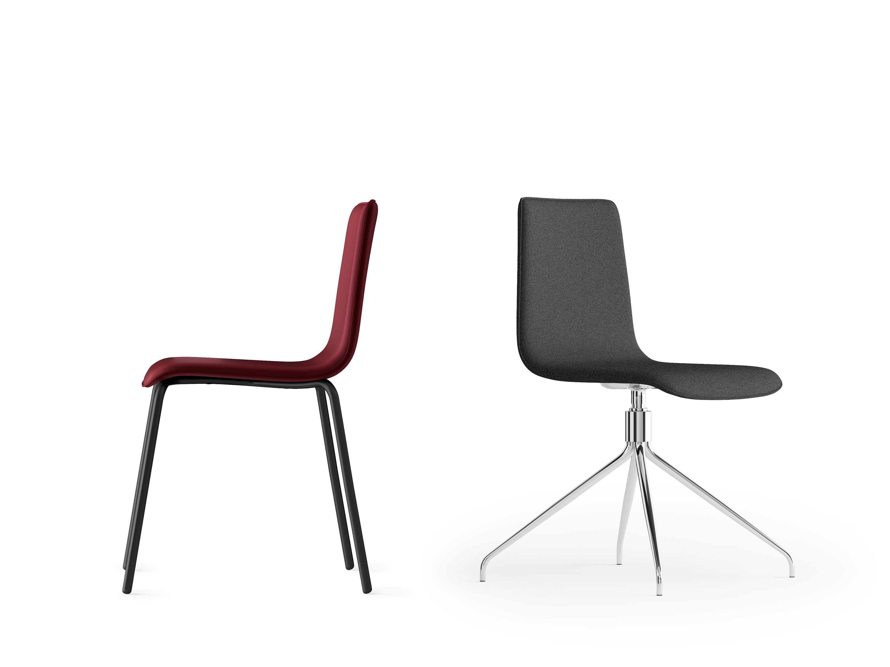 Padded swivel chair, chrome spider base