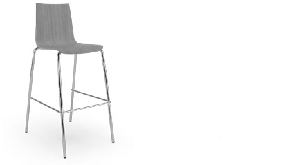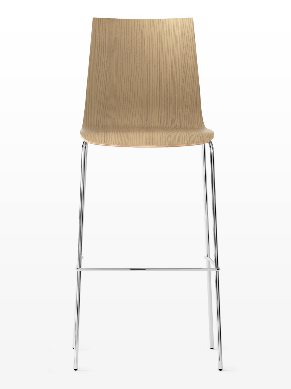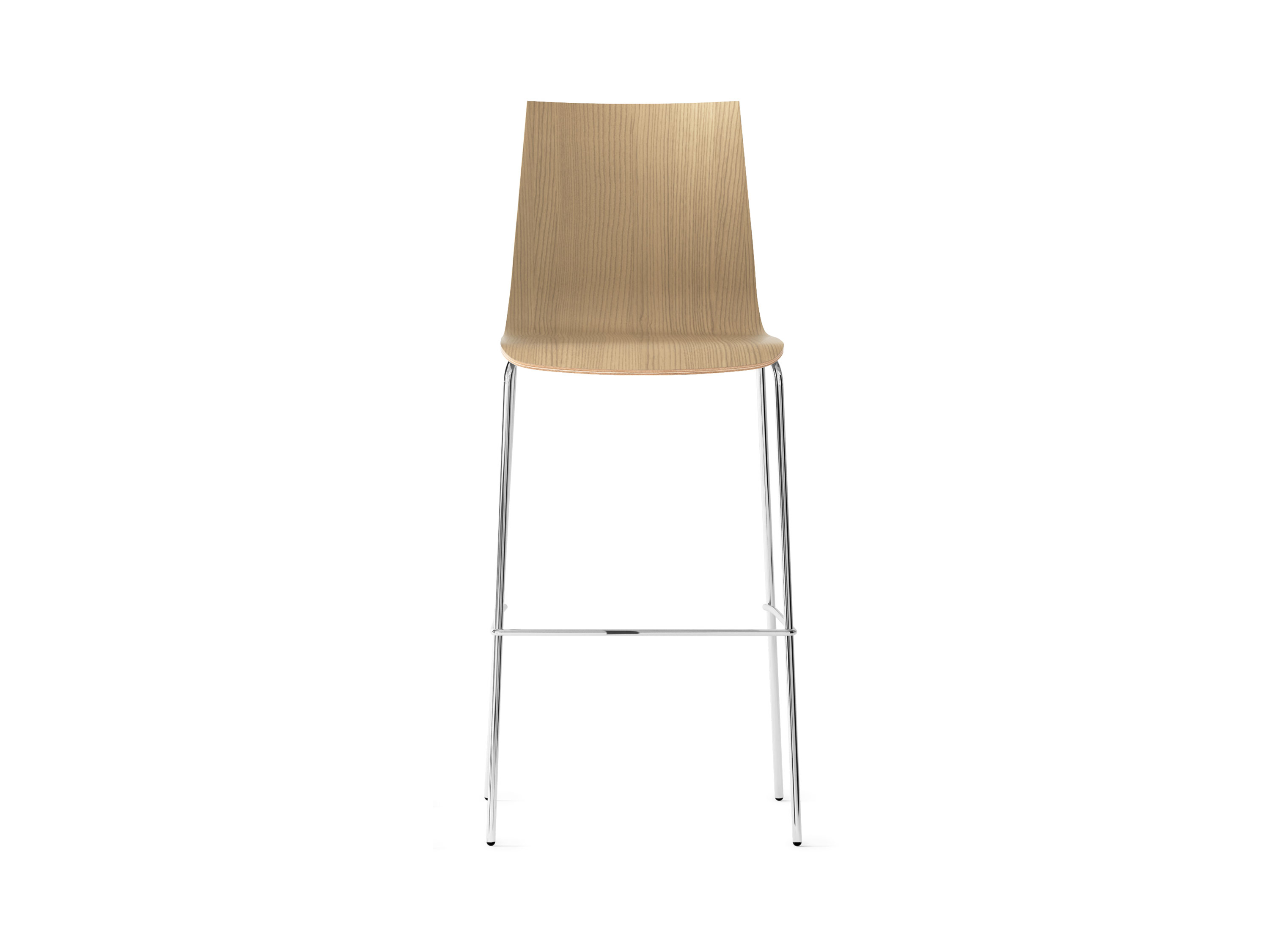 White stained oak wood shell stool, 4-legged chrome base