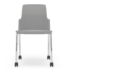 Stack chair, padded seat, polypropylene backrest, 4-legged chrome base on castors