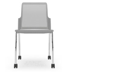 Stack chair, polypropylene seat, mesh backrest, 4-legged chrome base on castors