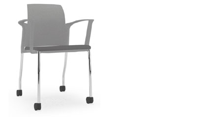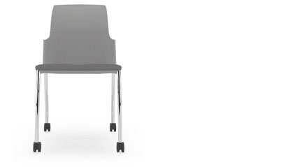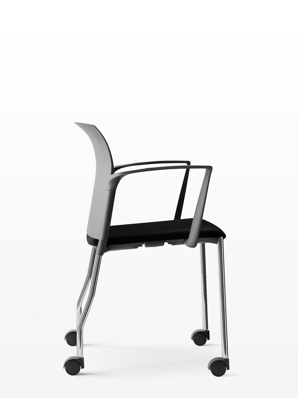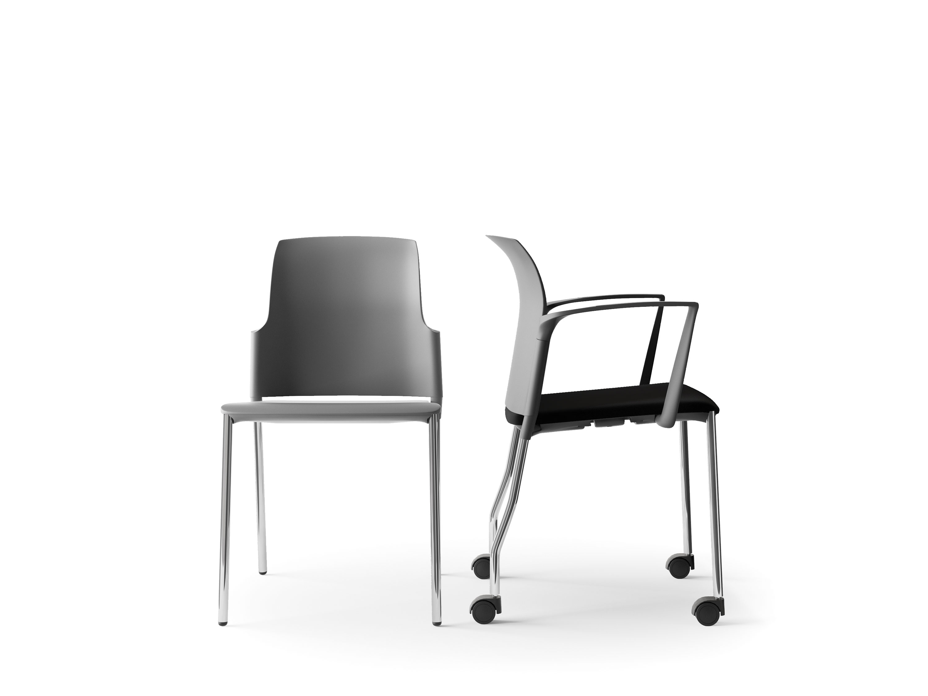 Stack armchair, padded seat, polypropylene backrest, 4-legged chrome base on castors