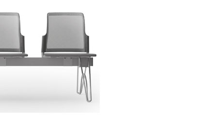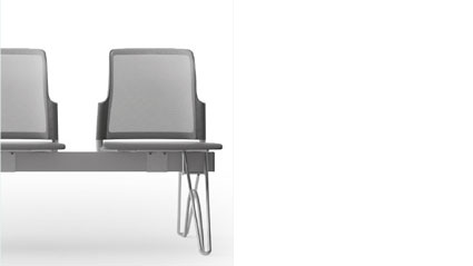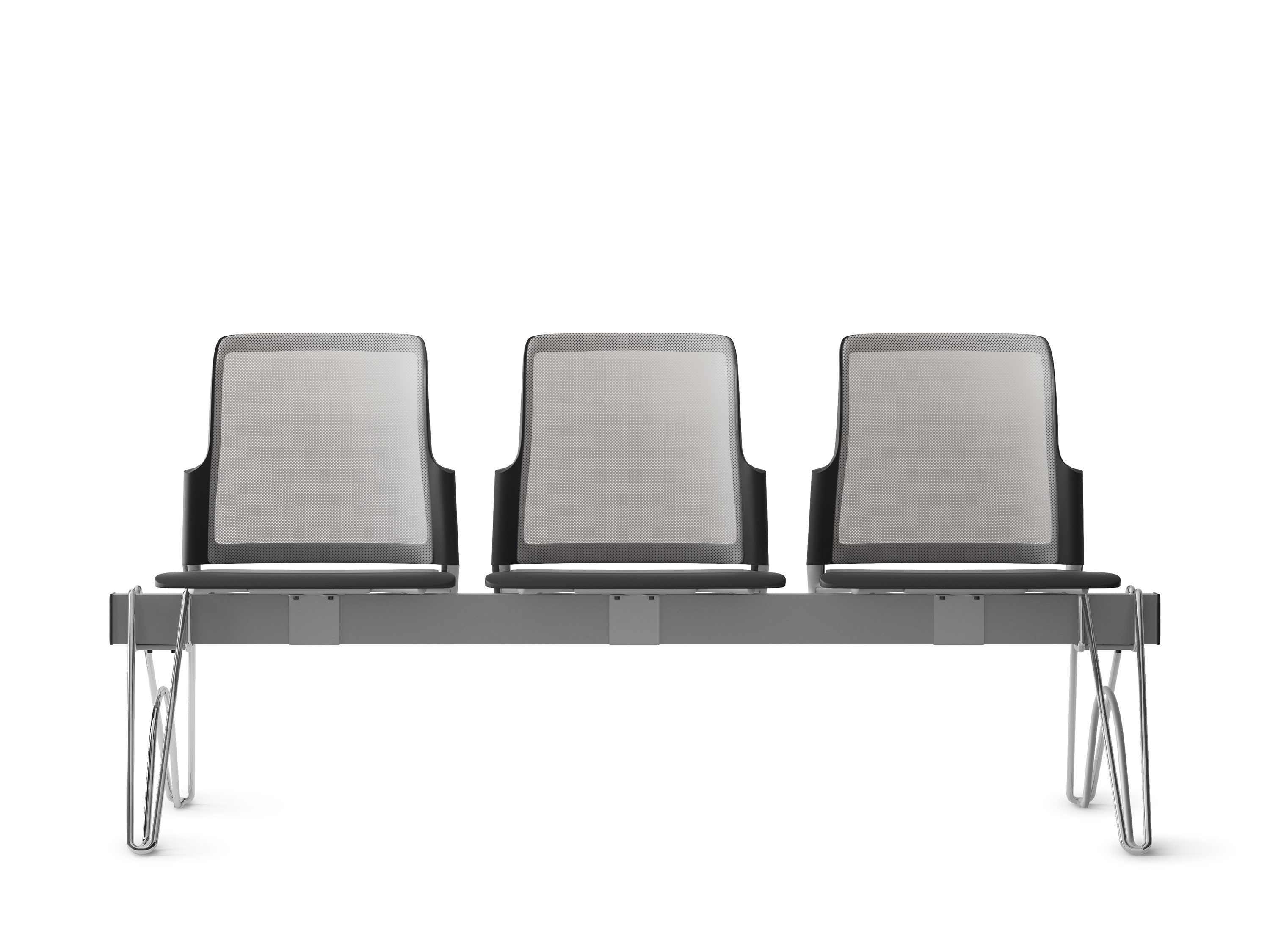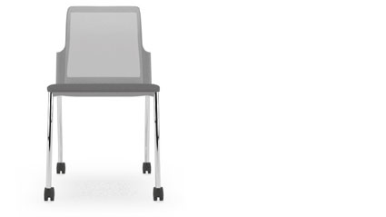Stack chair, padded seat, mesh backrest, 4-legged chrome base on castors
