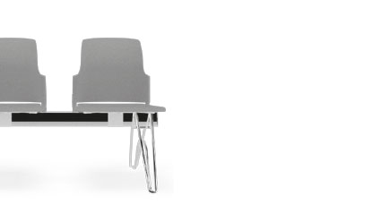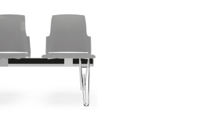 Three-seater bench with black laminate in-built table, polypropylene seat, mesh backrest