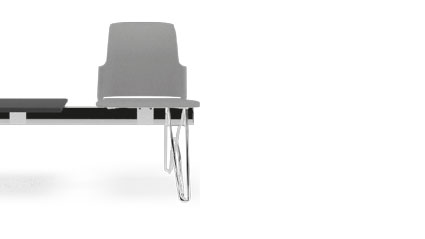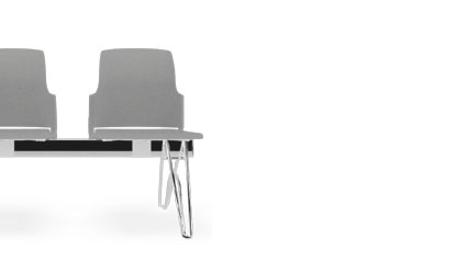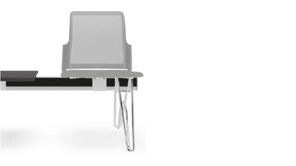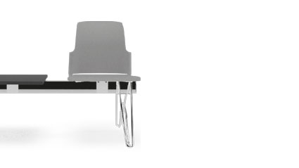 Two-seater bench with black laminate in-built table, polypropylene seat, mesh backrest