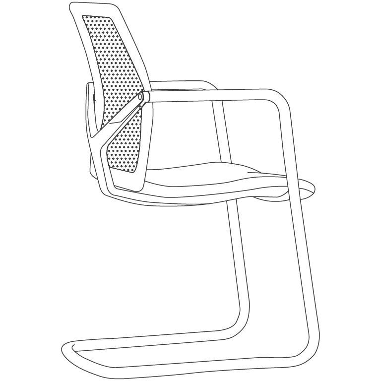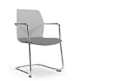 Chrome cantilever stack chair, padded seat, mesh backrest